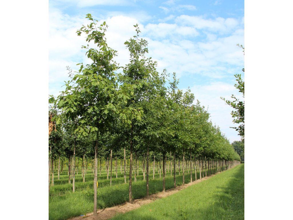 Dub červený (Quercus rubra) s obvodem kmene 18–20 cm je zapěstovaný alejový strom s vyvinutější korunou. Nabízí stabilní základ pro dlouhodobé výsadby.