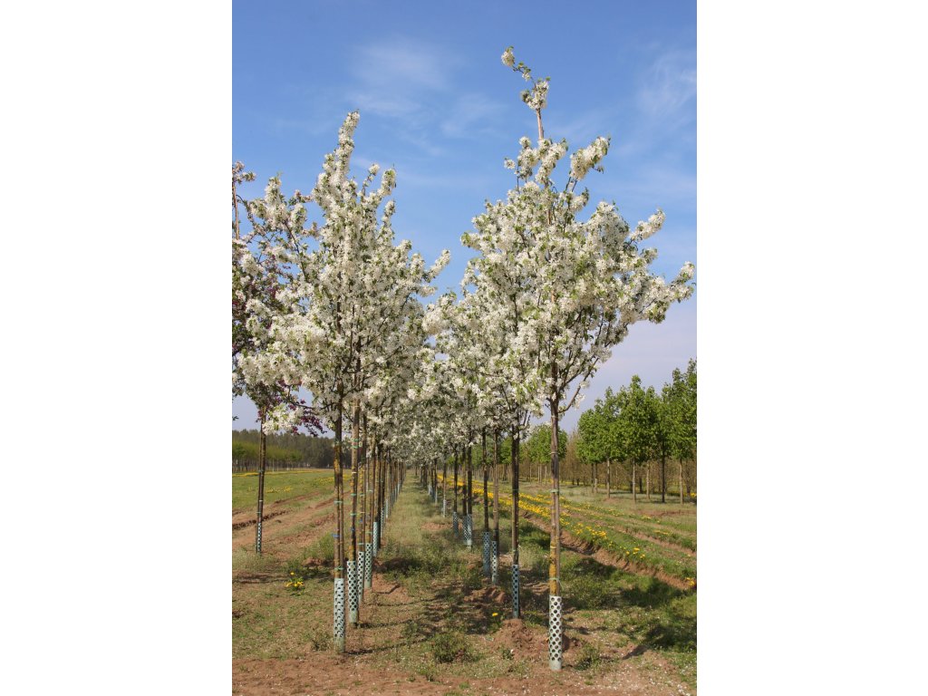 Kombinuje dekorativní jarní kvetení s drobnými plody a dobře snáší městské prostředí.