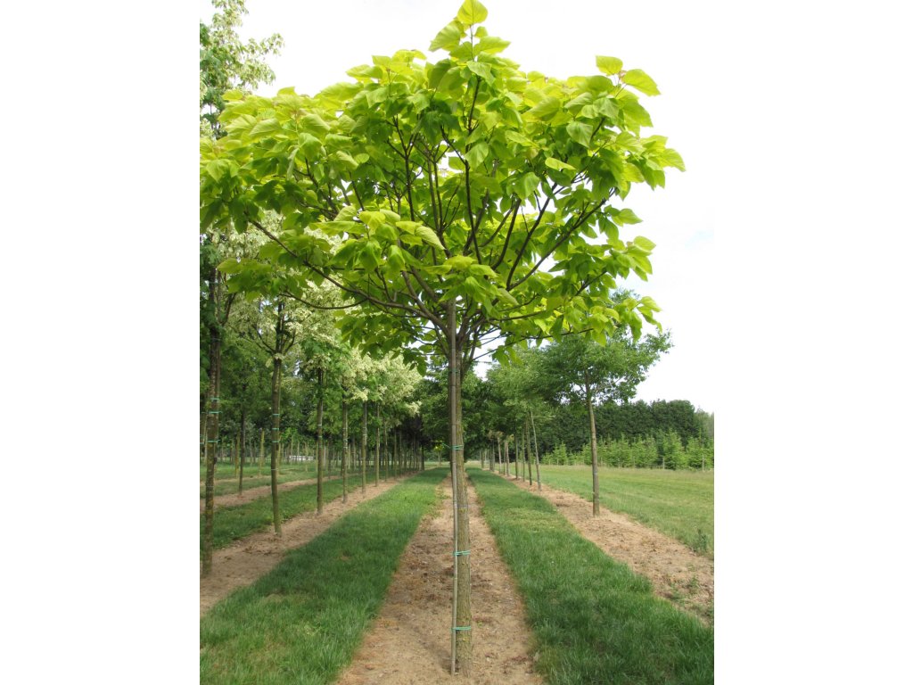 Katalpa trubačovitá 'Aurea' (Catalpa bignonioides 'Aurea') s obvodem kmene 10–12 cm je mladý strom známý svými velkými srdčitými listy se žlutým zbarvením. Patří mezi výrazné okrasné dřeviny využívané především v parcích a větších zahradách.
