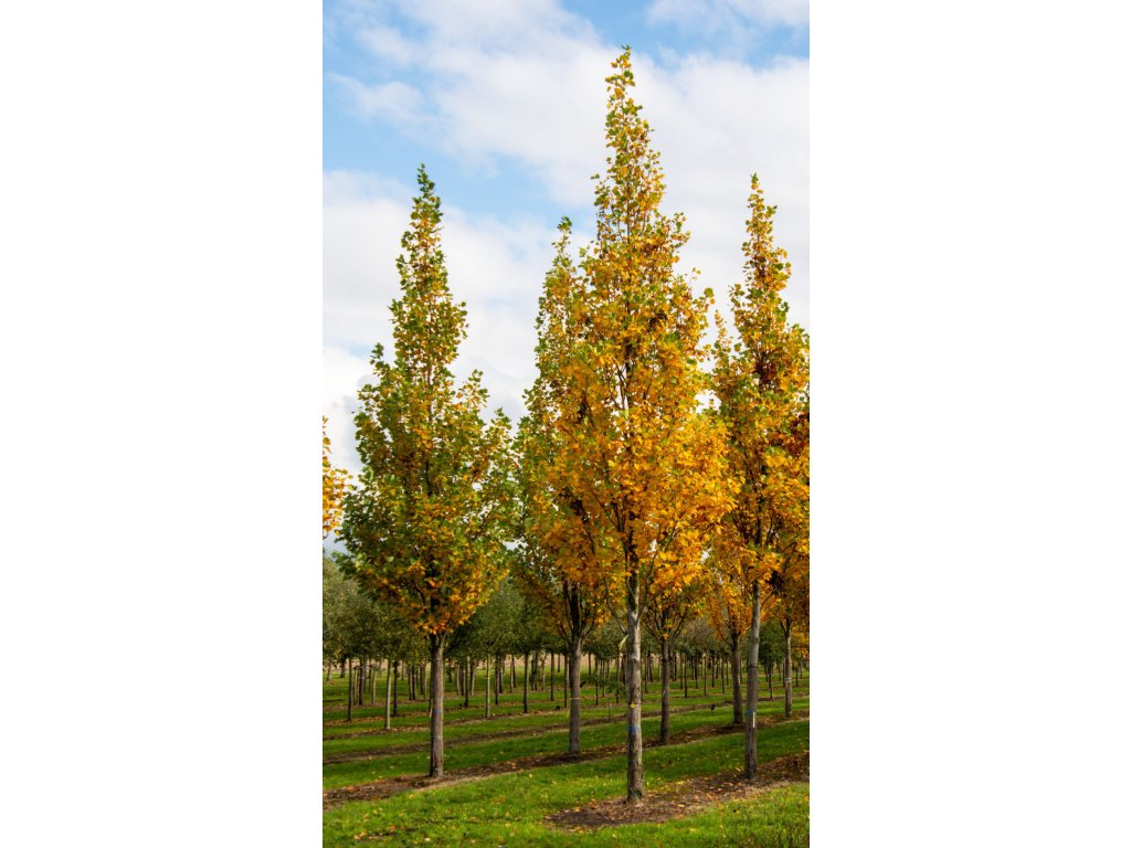 Liriovník tulipánokvětý 'Fastigiatum' (Liriodendron tulipifera 'Fastigiatum') ve velikosti 10–12 cm je úzce rostoucí alejový strom vhodný do omezených prostor.