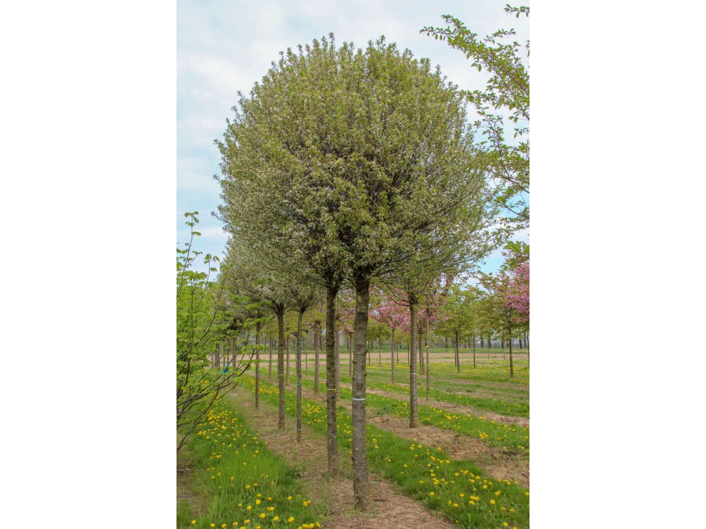Sakura ‘Umbraculifera’ (Prunus eminens ‘Umbraculifera’) je okrasná třešeň ceněná pro svůj pravidelný, kulovitý tvar koruny a bohaté jarní kvetení. Vzrostlé stromy této velikosti jsou vhodné pro okamžitý krajinářský efekt bez nutnosti dlouhého čekání.